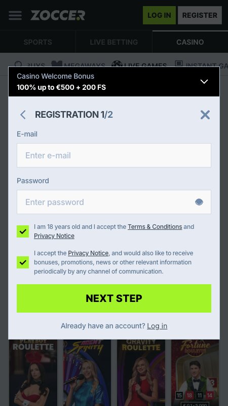 Proces registracije u Zoccer Casinu traje svega nekoliko minuta i osmišljen je tako da ga bez problema možeš dovršiti brzo i jednostavno, čak i putem mobitela dok si u pokretu. Sučelje je pregledno, a koraci su jasni, pa se i novi korisnici mogu lako snaći: