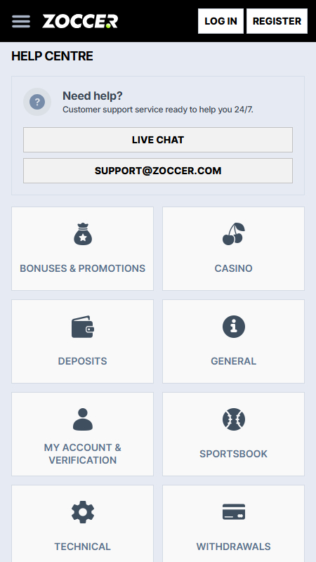 Korisnička podrška u Zoccer casinu ostavlja dobar dojam jer je dostupna kroz više kanala i radi bez većih komplikacija. Igračima su na raspolaganju live chat, e-mail podrška i centar za pomoć s najčešće postavljenim pitanjima i odgovorima. To znači da pomoć možeš dobiti brzo, bilo da imaš problem s uplatom, bonusom ili verifikacijom računa.