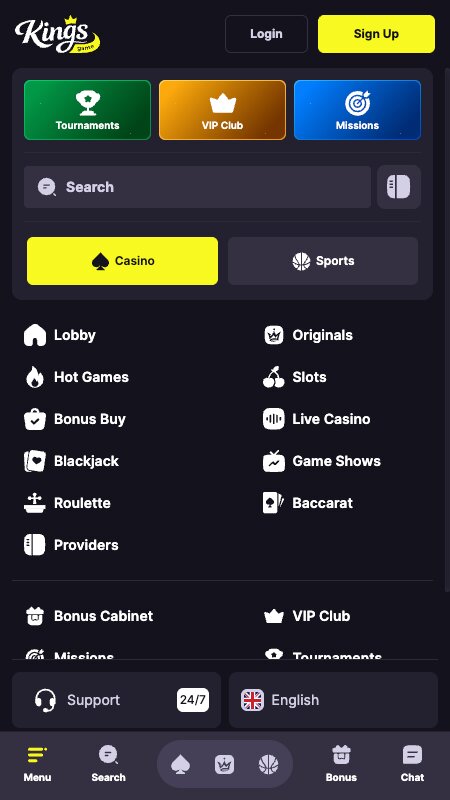 Glavne odlike Kings.Game Casina (da/ne)4/5⭐