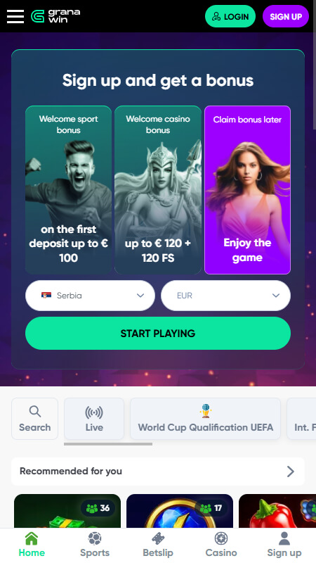 💡 Da li Granawin nudi bonus dobrodošlice za sportsko klađenje?