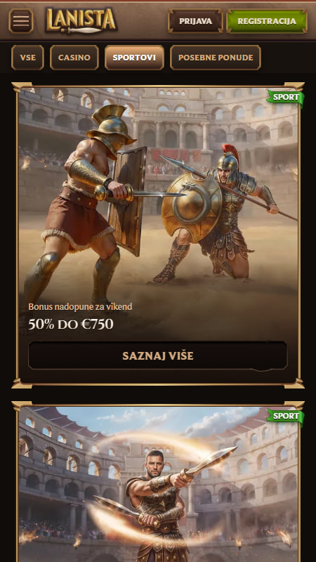 Sve u svemu, Lanista pruža fleksibilnu live sekciju, sa dobrim brojem tržišta, opcijama za cash‑out, što je čini pogodnom i za igrače koji se klade samo iz zabave i za iskusnije kladioničare.