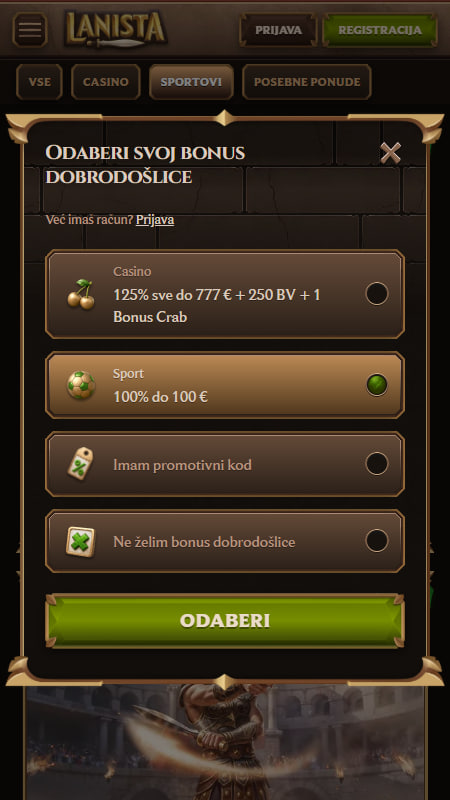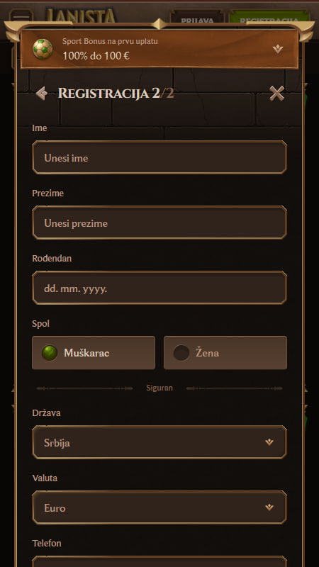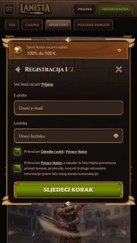 Ispratite ove korake kako biste se registrovali na Lanista kladionicu: